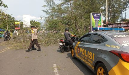 Polda Bengkulu Pohon Tumbang di Jalan Pariwisata Bengkulu, Polisi Sigap Lakukan Evakuasi dan Atur Lalu Lintas