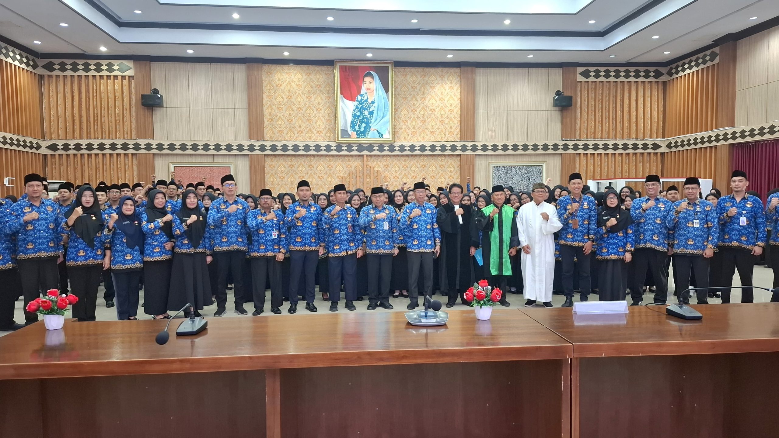 Kegiatan tersebut digelar di Gedung Pola Merah Putih, Selasa (8/4/2026), dan diikuti ratusan PNS yang resmi diambil sumpahnya.
