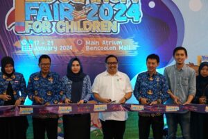 Setelah memberi sambutan, Pj Walikota didampingi Pj Sekda Eka Rika Rino, Staf Ahli Pemkot I Made Ardana, Kadis Koperasi dan UKM Nurlia Dewi dan Kabid PAUDNI Minarni, pihak Bencoolen Mall dan Stakeholder lainnya melakukan pemotongan pita seremoni pembukaan Education Fair For Children 2024 (17-21 Januari) dan ditutup dengan pemberian hadiah kepada para pemenang lomba.(BR1)