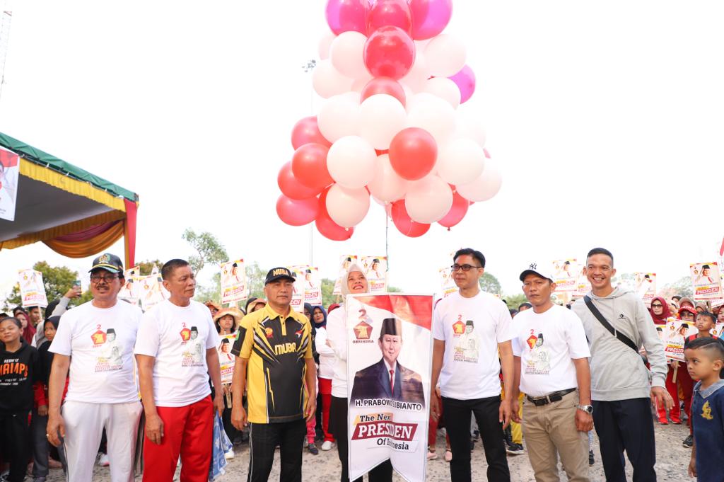 Musi Banyuasin,Beritarafflesia.com, – Ribuan masyarakat Kabupaten Muba mengikuti rangkaian jalan sehat Indonesia Raya dalam rangka peringatan HUT 15 Tahun Partai Gerindra, Minggu (26/2/2023) pagi.