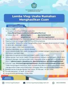 Lomba vlog ini terdiri dari 4 kategori yaitu pelajar SMP/SMA, Mahasiswa, Kader PKK dan Umum dengan hadiah jutaan rupiah.