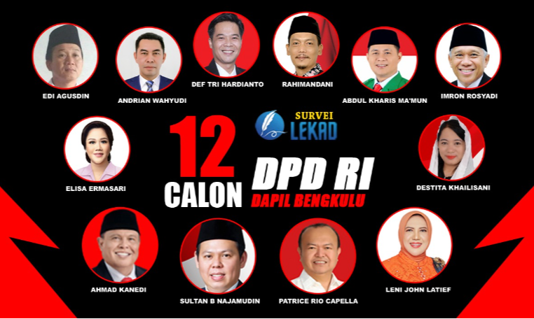 BENGKULU,Beritarafflesia.Com-– Pemilihan Legislatif (Pileg) 2024 menyisakan waktu tinggal hitungan minggu lagi, bahkan informasi terbaru dari Lembaga Edukasi dan Kajian Daerah (LEKAD), baru saja tuntas melakukan survei indikator khusus terhadap 12 sosok Calon DPD RI Dapil Provinsi Bengkulu.