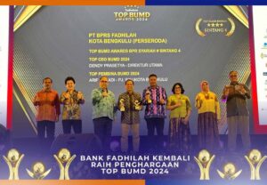 Bengkulu, Beritarafflesia.com- Keberhasilan PT. BPRS Fadhilah Kota Bengkulu diakui Top Business dan Institut Otonomi Daerah (I-OTDA). Pengakuan itu dibuktikan dengan penghargaan yang dicapai Bank Fadhilah dalam TOP BUMD Awards 2024 di Hotel Raffles Jakarta, Dian Ballroom Lt 11 baru-baru ini.