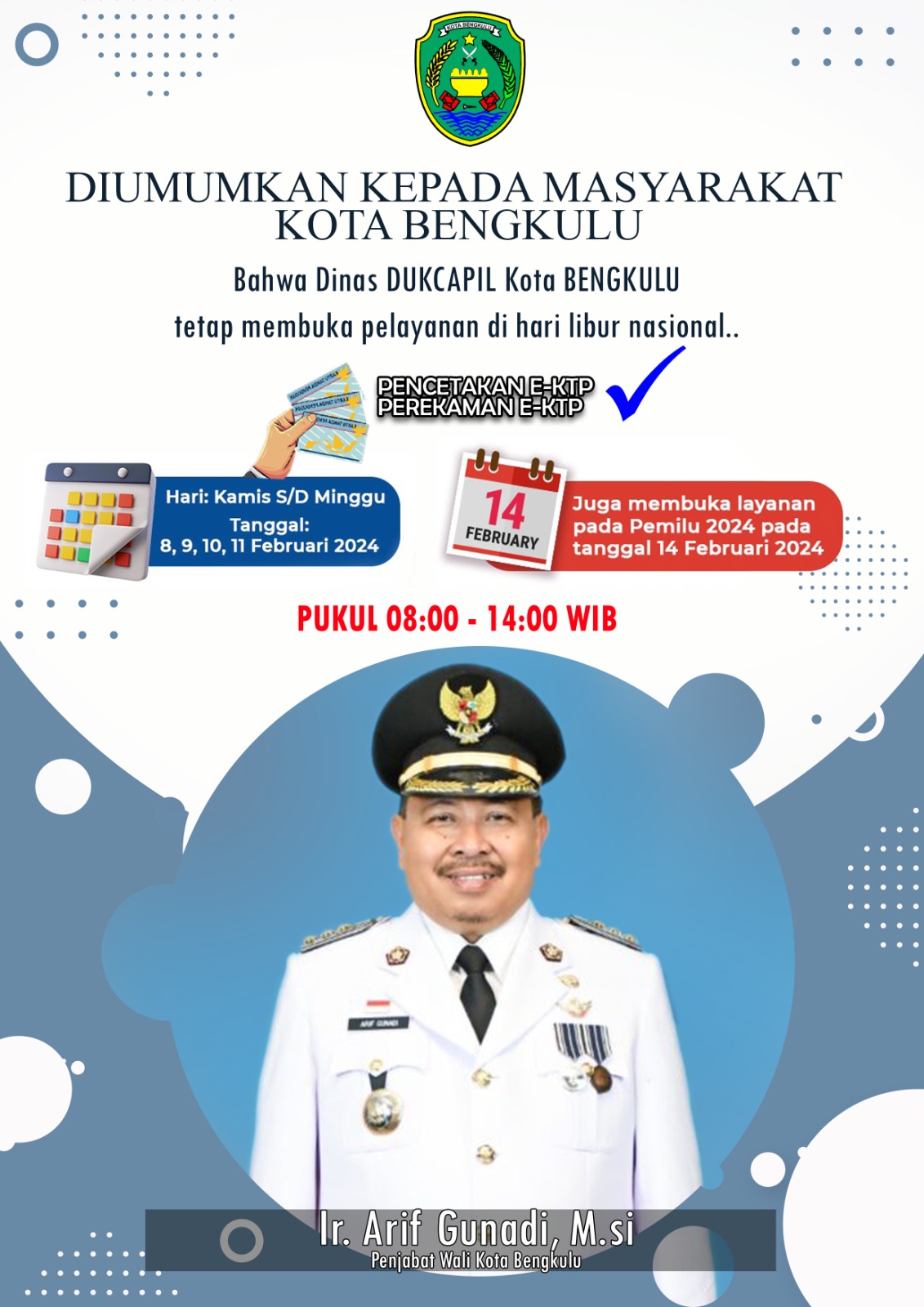 Bengkulu,Beritarafflesia.Com-Menindaklanjuti Surat Direktur Jenderal Kependudukan dan Pencatatan Sipil Kementerian Dalam Negeri (Kemendagri) Nomor : 400.8.1.2/615/Dukcapil tanggal 6 Februari 2024 perihal Layanan Dukcapil pada hari…