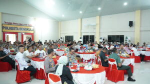 Bengkulu,Beritarafflesia.Com-Bertempat di Aula Endra Dharmalaksana, Senin (5/2/2024), Polresta Bengkulu menggelar coffee morning silaturahmi unsur Forkopimda bersama partai politik peserta pemilu, tokoh agama, tokoh masyarakat, tokoh adat, tokoh pemuda dan organisasi masyarakat.