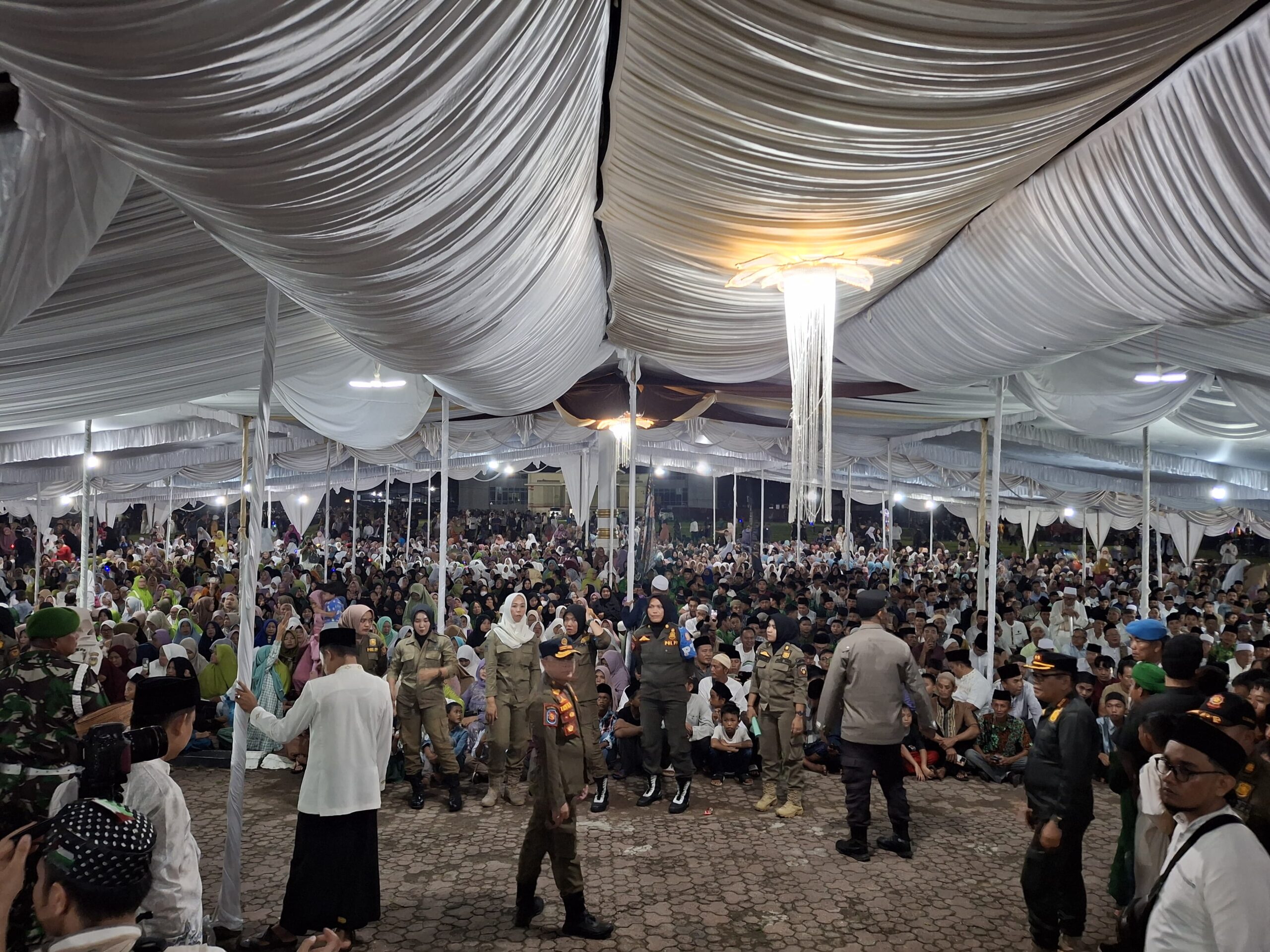 Ribuan warga ini sudah rela menunggu sejak pukul 16.00 WIB, meski agenda Tabligh baru akan dimulai pukul 19.30 WIB atau ba’da Isya.