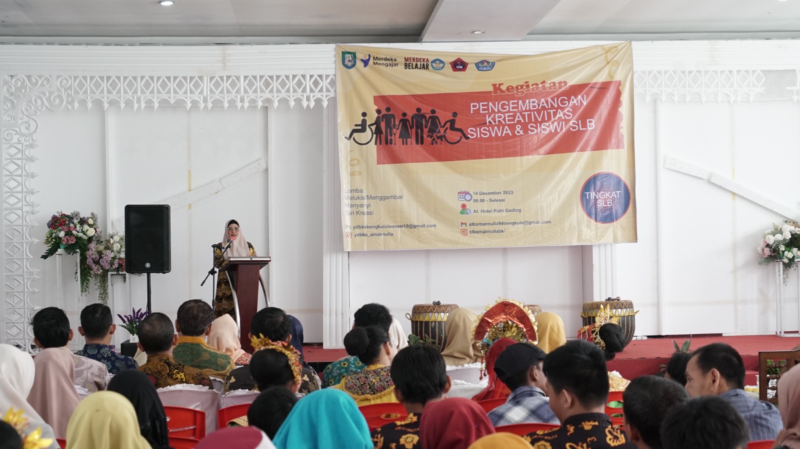 Bengkulu,Beritarafflesia.Com-Yayasan Dharma Bhakti Kesejahteraan Sosial (YDBKS) Sekolah Luar Biasa (SLB) Amal Mulia menyelenggarakan acara pengembangan minat dan bakat siswa-siswi SLB se-Provinsi Bengkulu dengan beberapa kategori lomba di antaranya tari kreasi, melukis/mewarnai, dan menyayi di aula Hotel Gading Cempaka Anggut Bawah Kota Bengkulu, (15/12).