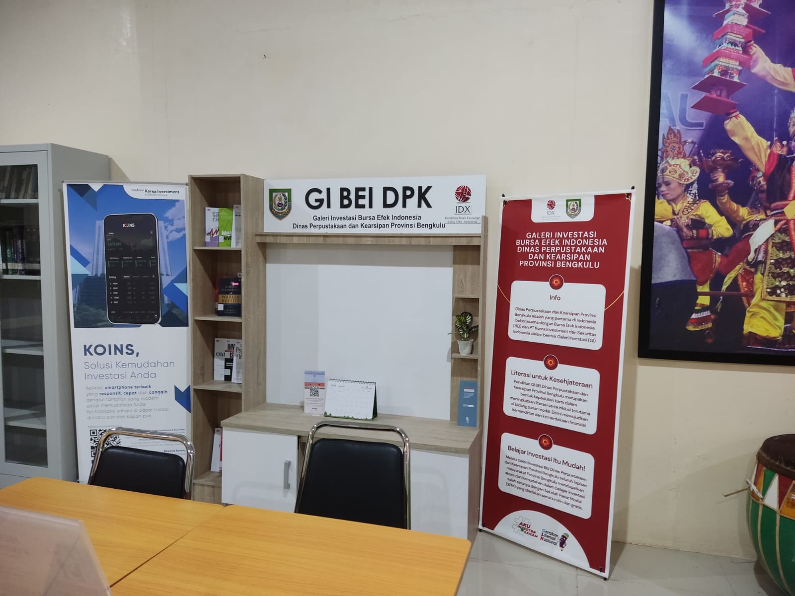 Dinas Perpustakaan dan Kearsipan atau DPK Provinsi Bengkulu adalah yang pertama di Indonesia bekerjasama dengan Bursa Efek Indonesia (BEI) DAN PT Korea Investment dan Sekuritas Indonesia dalam bentuk Galeri Investasi (GI).