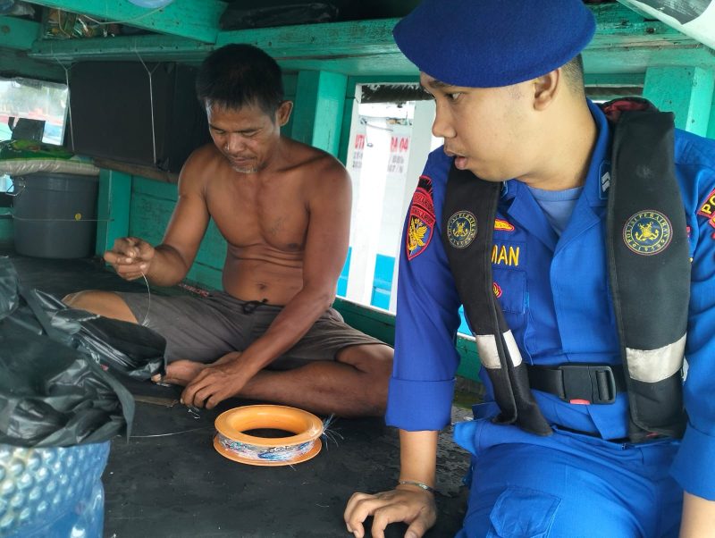 Dalam dialog tersebut, personel mengingatkan ABK agar selalu memperhatikan kelengkapan alat keselamatan di atas kapal.