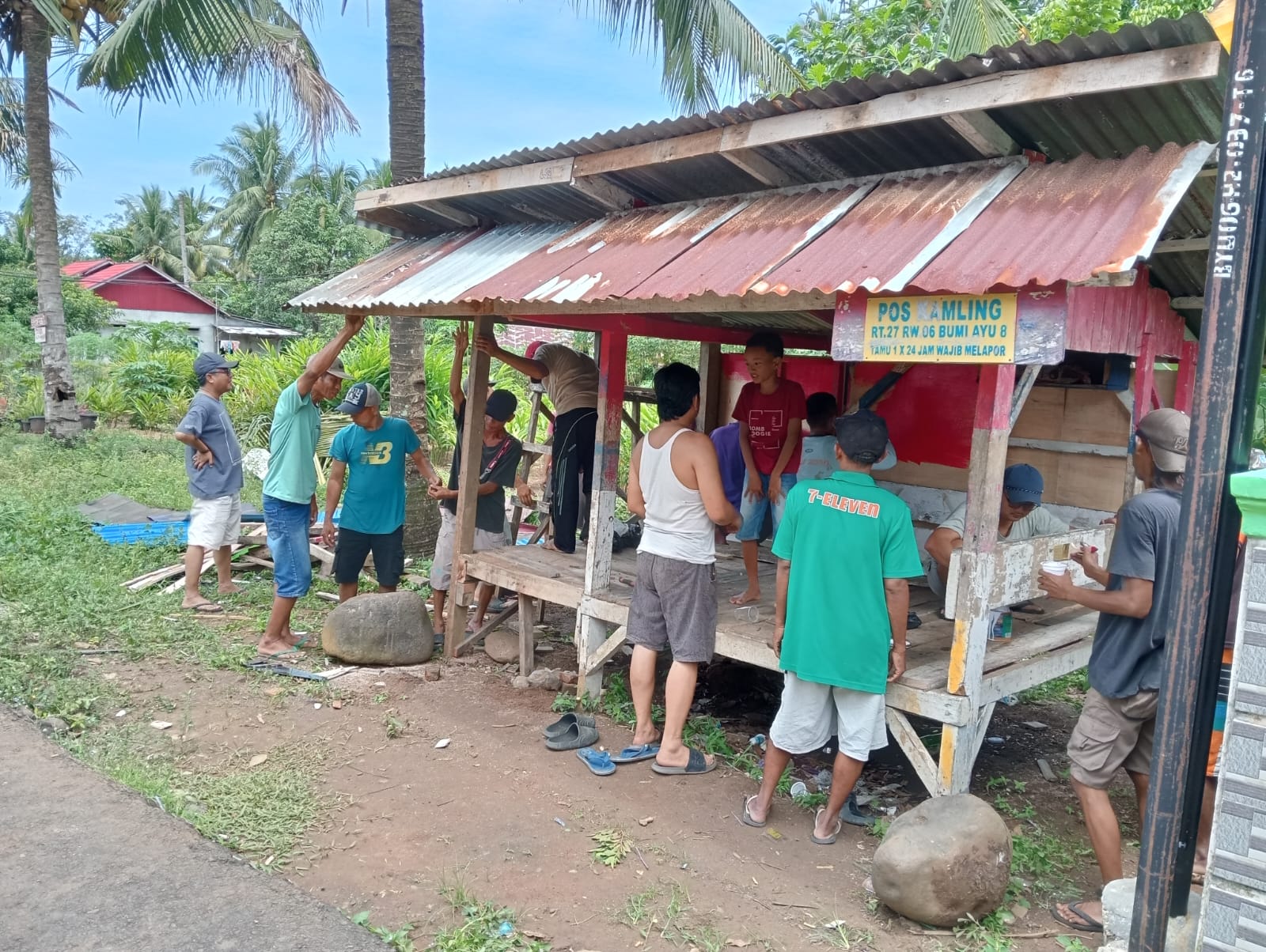 Foto/ Warga RT 27 Bumi Ayu Kompak Rehabilitasi Pos Kamling