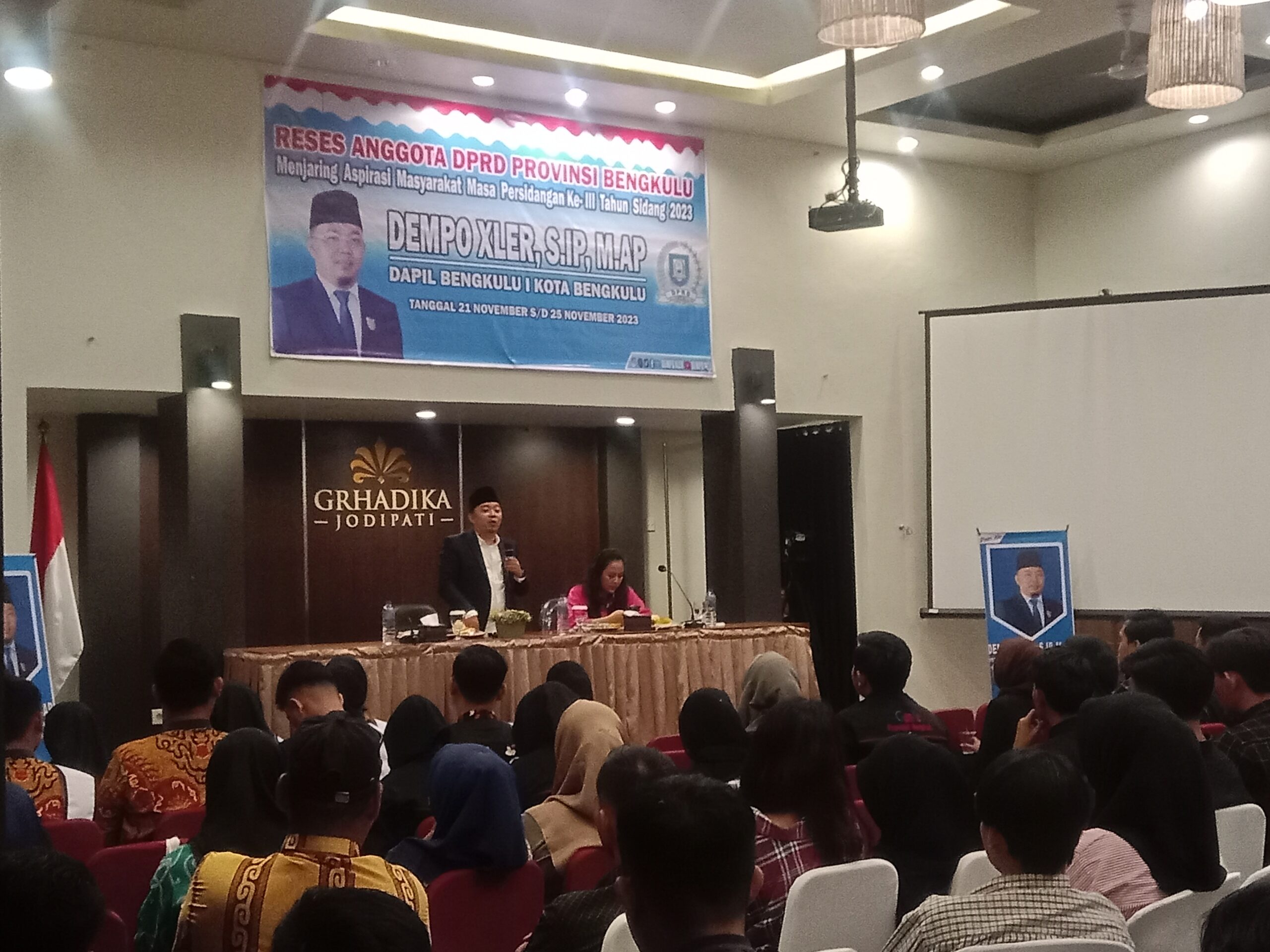 Bengkulu,Beritarafflesia.Com-Rabu, (22,/11/2023) Ketua komisi I Dewan Perwakilan Rakyat Daerah ( DPRD) Dempo Xler,Msi.M.AP,Mengelar reses Ke-III di aula Hotel Gradikan Jodipati.