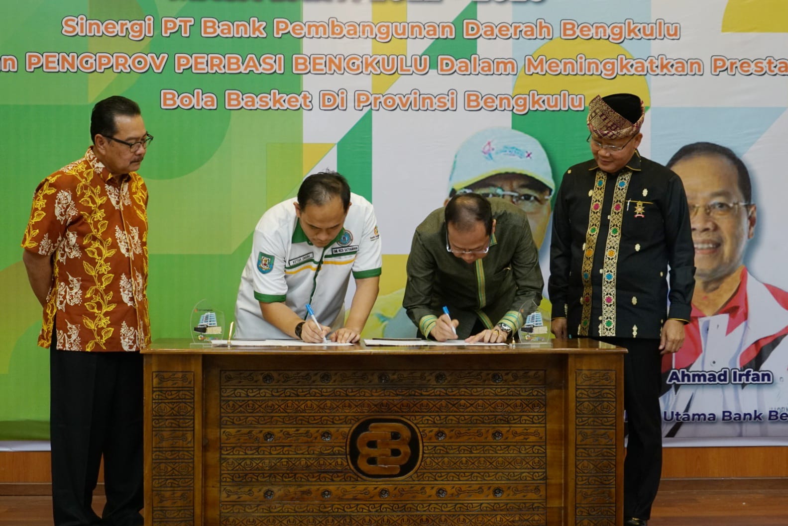 Bengkulu, Beritarafflesia.com- Gubernur Rohidin Mersyah hadiri acara penandatanganan MoU antara PT. Bank Pembangunan Daerah Bengkulu dengan Persatuan Bola Basket Seluruh Indonesia (PERBASI) di Ruang Rapat Lantai 7 Graha Bank Bengkulu, Selasa (31/1).