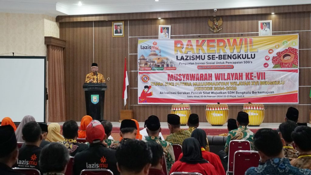 Bengkulu,Beritarafflesia.Com-Gubernur Bengkulu Rohidin Mersyah membuka Rapat Kerja Wilayah (Rakerwil) LAZISMU Wilayah Bengkulu tahun 2024 dan Pembukaan Musyawarah Wilayah ke VII Tapak Suci Putra Muhammadiyah wilayah XVI Bengkulu periode 2024 – 2029 di aula BPSDM Prov. Bengkulu, Sabtu (3/2).