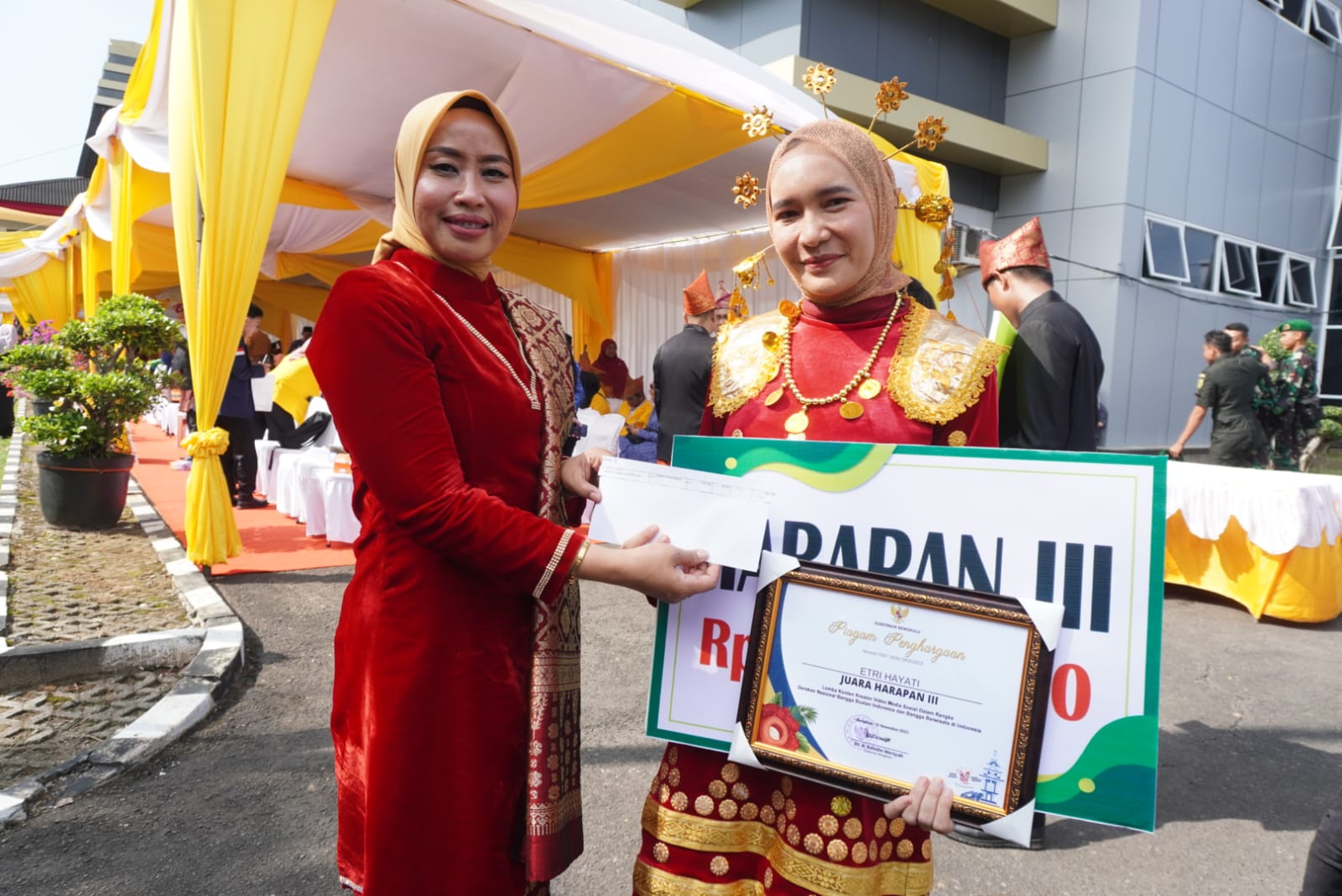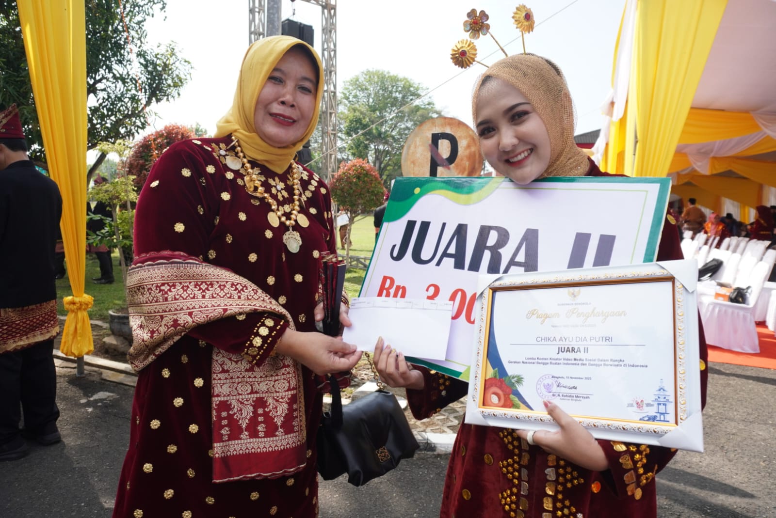 “Jadi hari ini sudah kita dapatkan 6 pemenang, juara 1 sampai harapan 3. Sudah kita berikan hadiah berupa piagam, uang pembinaan dan sebagainya. Diharapkan di tahun depan akan memunculkan konten kreator yang semakin baik, sehingga semakin membangkitkan pembangunan Bengkulu,” ungkap Kadis Kominfotik Oslita.