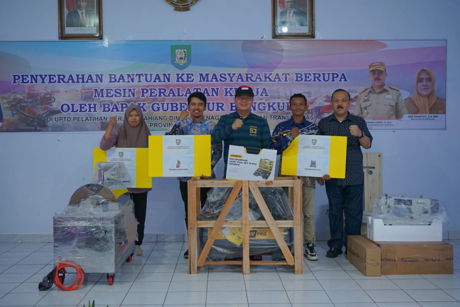 Bantuan yang diserahkan oleh Gubernur Rohidin Mersyah di UPTD pelatihan Kerja Kepahiang. Di antaranya peralatan pengolahan kopi bubuk, peralatan bengkel motor dan mesin jahit untuk 13 penerima.