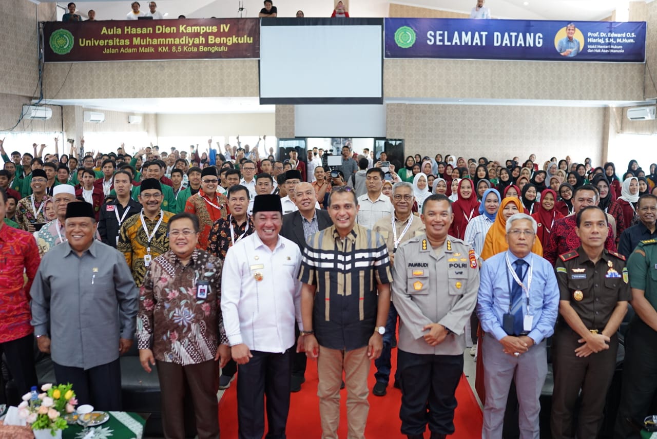 Hal ini disampaikan Wagub Rosjonsyah saat menghadiri acara ‘Kumham Goes To Campus’ yang menghadirkan Wakil Menteri Hukum dan Hak Asasi Manusia (Wamenkumham) Edward Omar Sharif Hiariej di kampus Universitas Muhammadiyah Bengkulu ,pada Rabu  (15/03/2023)