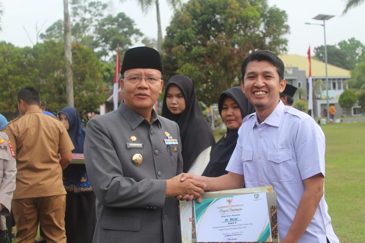 Bengkulu,Beritarafflesia.Com-Gubernur Bengkulu Rohidin Mersyah menjadi pembina upacara dalam rangka Hari Kesehatan Nasional ke 59 di Halaman Kantor Gubernur Bengkulu pada Senin, 13/11/2023.