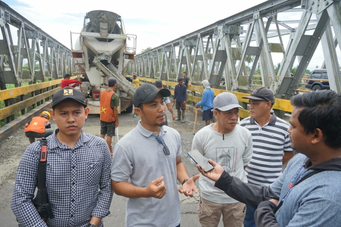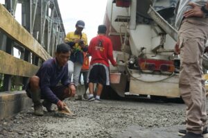 “Kita akan gali dulu lubang jalan yang ditutupi koral ini karena mempengaruhi beban yang ada di atas jembatan ini. Kalau langsung kita tutup otomatis bebannya akan bertambah,” kata Denny.