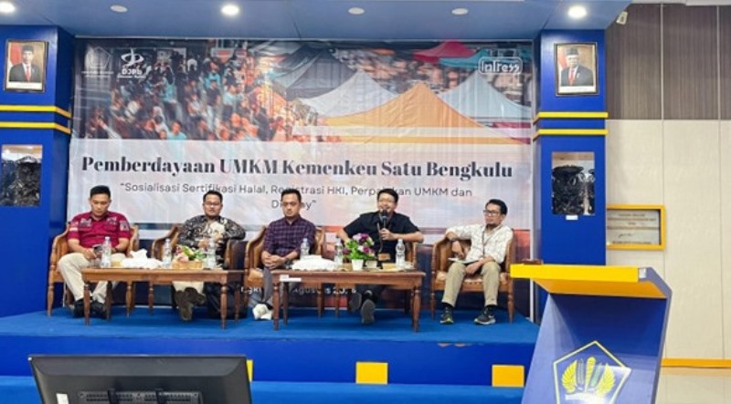 Acara yang digelar di Aula Raflesia Kanwil DJPb Provinsi Bengkulu tersebut bertujuan untuk memberikan informasi dan pendampingan mengenai Sertifikasi Halal, Registrasi Hak Kekayaan Intelektual, Perpajakan UMKM, dan Penggunaan DIGIPAY dalam menjalankan usaha.