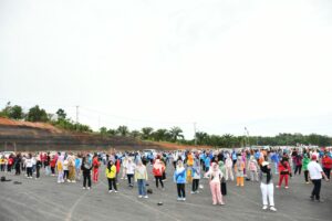 Pj walikota bersama seluruh PNS dan PTT tampak semangat mengikuti gerakan senam dengan iringan musik Numpak RX-King, senam Mahumere, senam Wer Kewer-kewer dan senam jantung sehat.