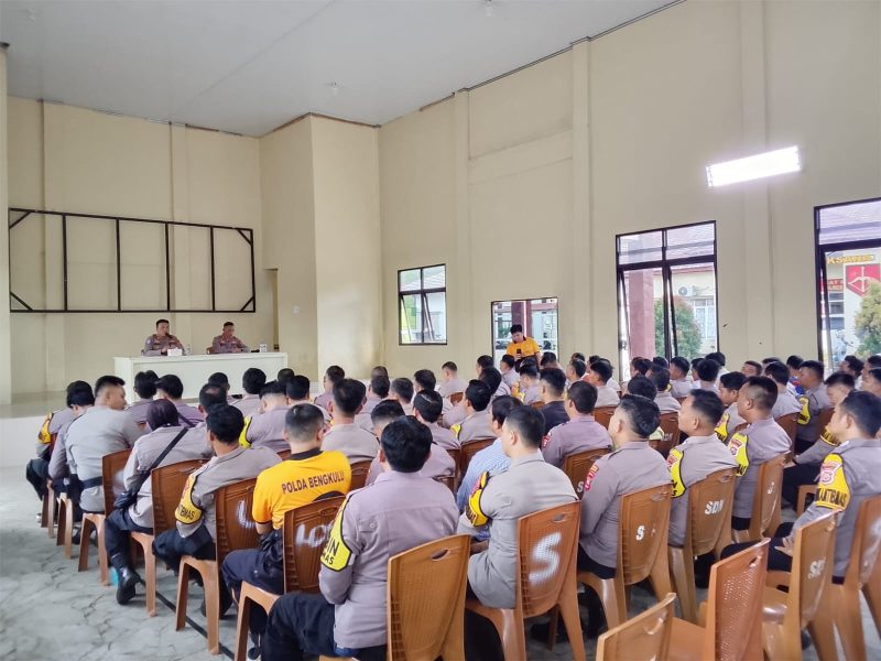 Kepahiang, Beritarafflesia.com.- Kapolres Kepahiang, AKBP Yuriko Fernanda, S.H., S.I.K., M.H., memberikan arahan kepada Bintara Penggerak Ketahanan Pangan dalam sebuah kegiatan yang berlangsung di Aula SAR Polres Kepahiang, Jumat (17/4/2026) pukul 13.30 WIB.