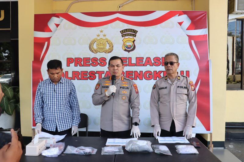 Hal ini terlihat dalam kegiatan press release pengungkapan kasus tindak pidana narkotika yang dipimpin langsung Kapolresta Bengkulu Kombes Pol Rahmad Hidayat, S.S., M.H, Selasa (21/04/2026) pukul 13.30 WIB di Lobby Polresta Bengkulu.