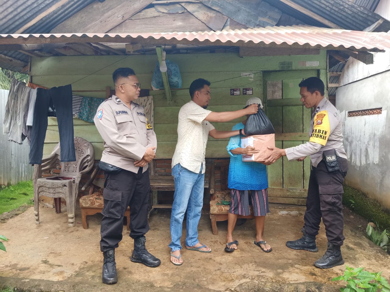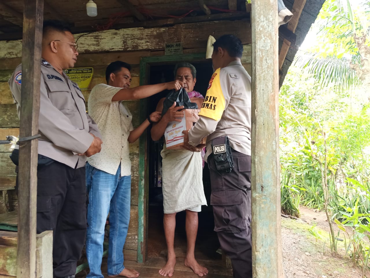 Polsek Batik Nau Ipda Deni Mashuri, S.H., beserta anggotanya dan di dampingi perangkat desa, durian amparan menyerahkan bantuan sosial kemanusian kepada masyarakat kurang mampu dan sakit menahun di desa Durian Amparan Kec Batik Nau Kab Bkl Utara.