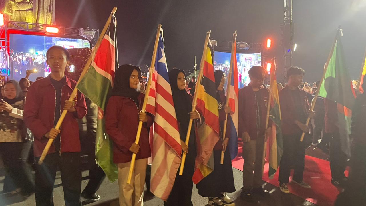 Suasana berlangsung semarak dengan pancaran cahaya lampu dan antusiasme masyarakat yang memadati sepanjang rute acara.