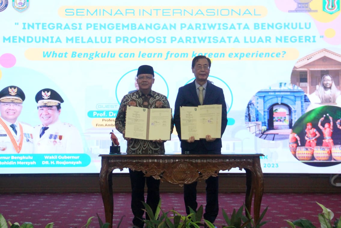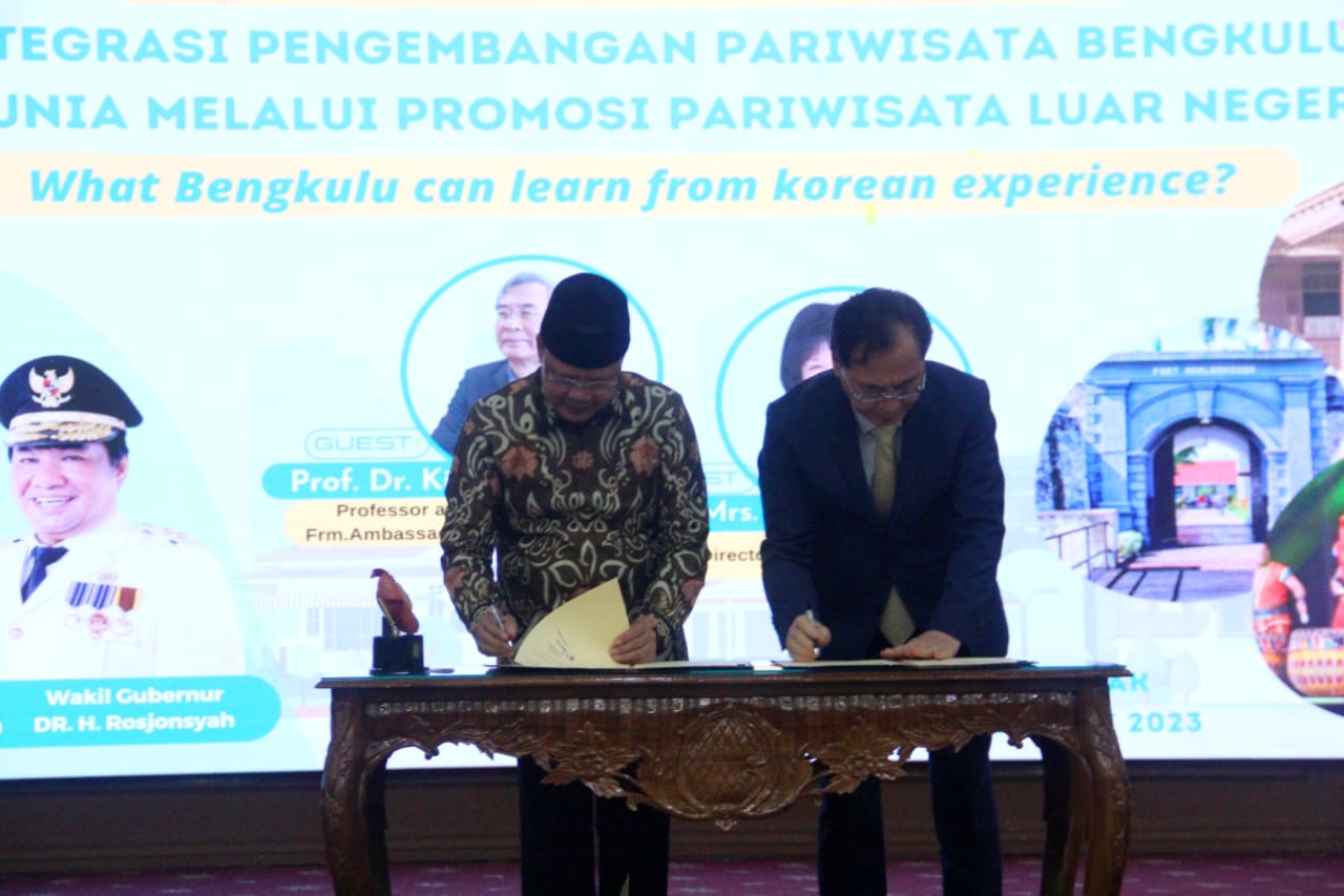 Bengkulu,Beritarafflesia.com- Meningkatkan sektor pariwisata Provinsi Bengkulu melalui kerjasama lintas negara, Gubernur Bengkulu Rohidin Mersyah lakukan penandatanganan kerja sama antara pemerintah Provinsi Bengkulu dengan Busan Indonesia Center (BIC), terkait promosi wisata.
