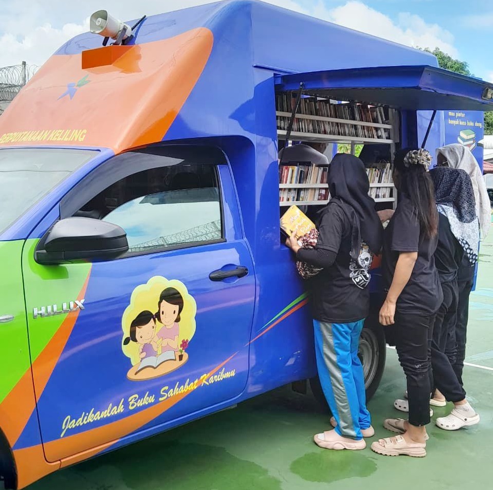 Kegiatan ini disambut antusias oleh warga binaan yang memanfaatkan kesempatan untuk membaca berbagai koleksi buku yang dibawa langsung oleh mobil perpustakaan keliling.