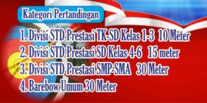 Cabang perlombaan panahan merah putih ini terbagi menjadi 4 kategori pertandingan, seperti divisi standar prestasi TK dan SD, dari kelas 1-3 dengan jarak 10 meter, divisi standar prestasi kelas 4-6 jarak 15 meter, divisi standar prestasi SMP-SMA dan untuk umum dengan jarak 30 meter.