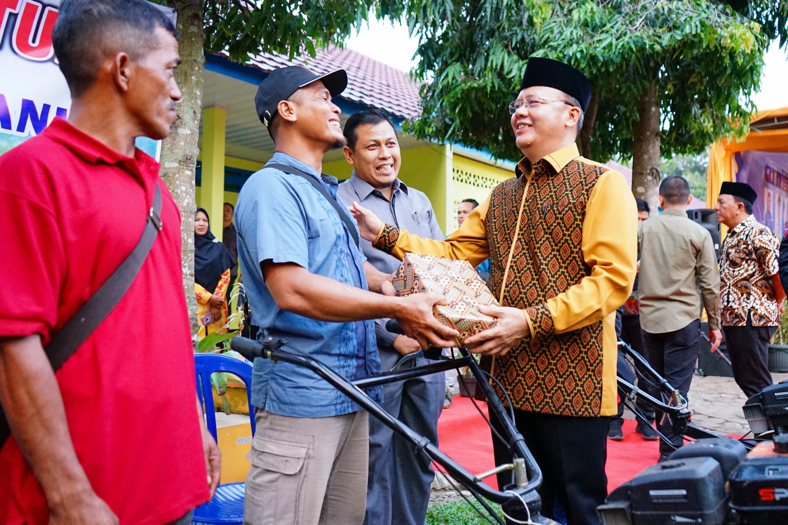 Di tempat yang sama, Gubernur Rohidin Mersyah juga Ibu Gubernur menyerahkan bantuan 118 Alsintan berupa, cultivator, mesin potong rumput dan hand sprayer kepada 68 kelompok tani di Kabupaten Bengkulu Utara.