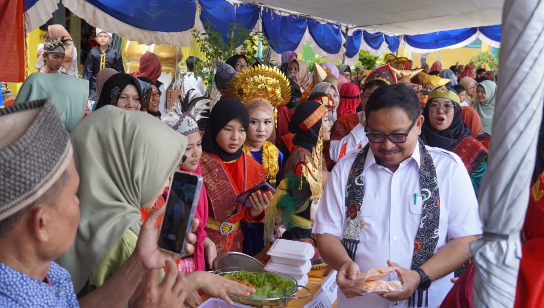 Didampingi Pj Sekda Eka Rika Rino, Asisten I Eko Agusrianto, Kadis Diknas Gunawan dan Kadis Dinkes Joni Haryadi, Arif mengunjungi satu persatu stand yang ada di SMPN 2, dimana setiap stand menjual makanan atau masakan tradisional khas beberapa provinsi di Indonesia seperti Provinsi Lampung, Aceh, Jawa Timur, Sulawesi, Sumbar, Sumsel, Sumut, Bengkulu dan lainnya.