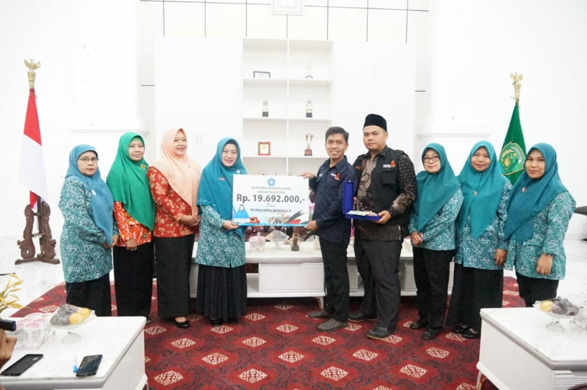 Bengkulu,Beritarafflesia.Com-Tim Penggerak Pemberdayaan dan Kesejahteraan Keluarga (TP PKK), Gabungan Organisasi Wanita (GOW), Dharma Wanita Persatuan (DWP) Kota Bengkulu menyerahkan bantuan kemanusiaan peduli Palestina sebesar Rp27,7 juta (TP PKK Rp22,2 juta, GOW Rp1,4 juta, DWP Rp 4,1 juta).