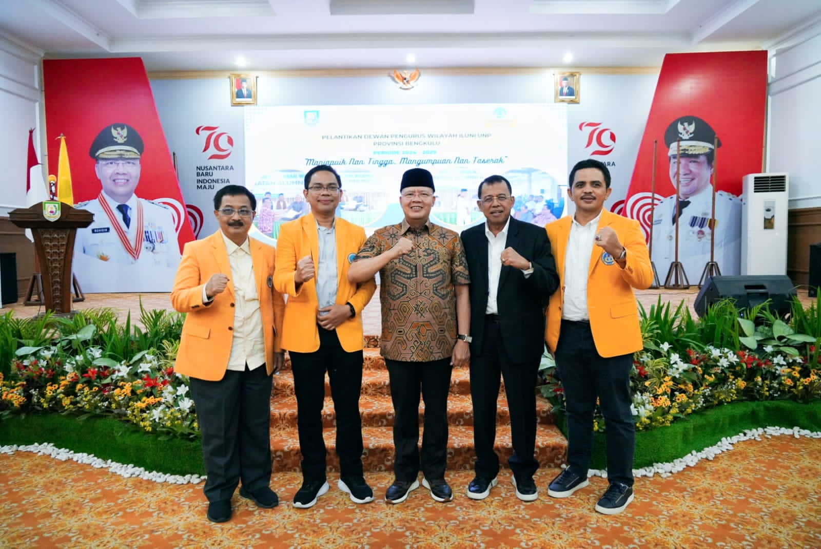 Gubernur Bengkulu, Rohidin Mersyah, menyampaikan ucapan selamat kepada dewan pengurus ILUNI UNP yang baru dilantik.