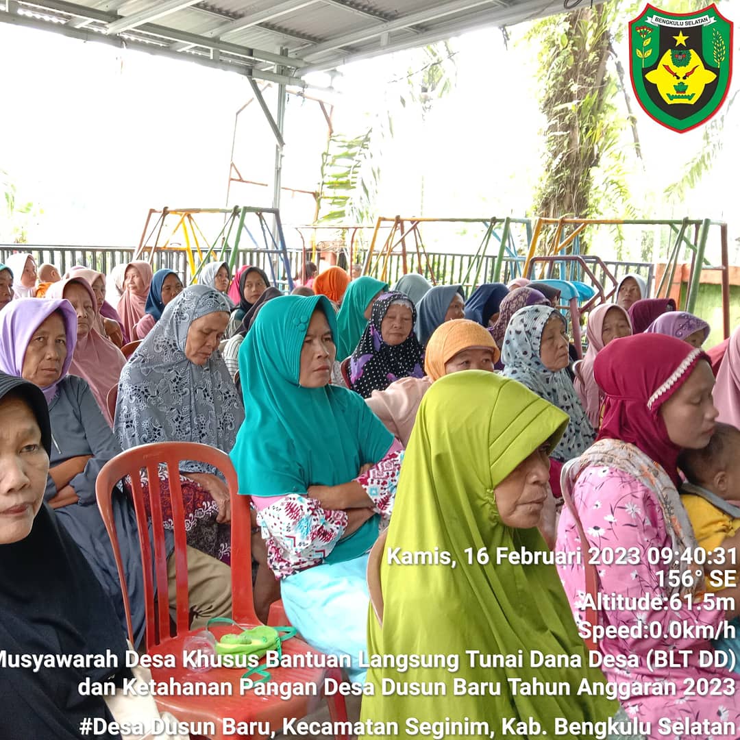 Sementara itu, di waktu yang sama Kepala desa desa dusun baru kecematan seginim Kabupaten Bengkulu selatan isnaini, mengungkapkan, Pada hari ini desa dusun baru terdapat lebih kurang 10 % persen untuk penerima Bantuan Langsung Tunai (BLT) DD