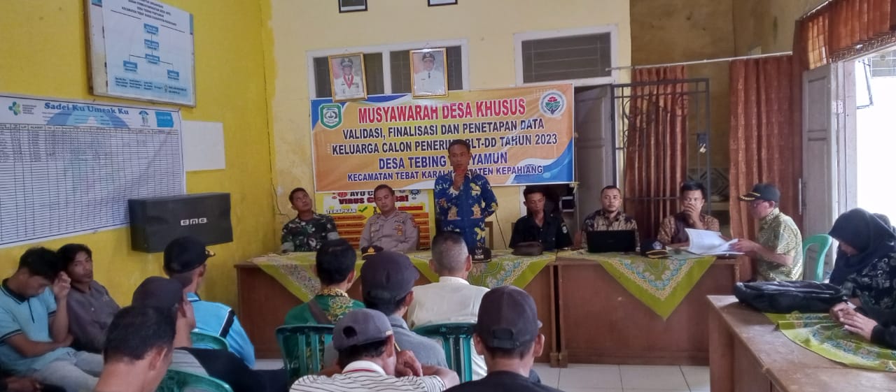 Diwaktu yang sama, dalam sambutan kepala Desa tebing penyamun pak Mahril menjelaskan,  bahwa sebelum musawarah digelar dirinya sudah menyerahkan kepada kepala dusun adar mendata warga penerima BLT DD tahun 2023 ini harus sesuai dan regulsi, dan tepat sasaran