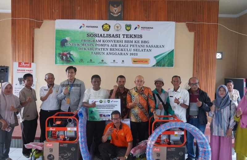 Kegiatan sosialisasi ini merupakan pendistribusian paket konversi BBM ke BBG untuk mesin pompa air bagi 101 orang petani sasaran di Kabupaten Bengkulu Selatan.