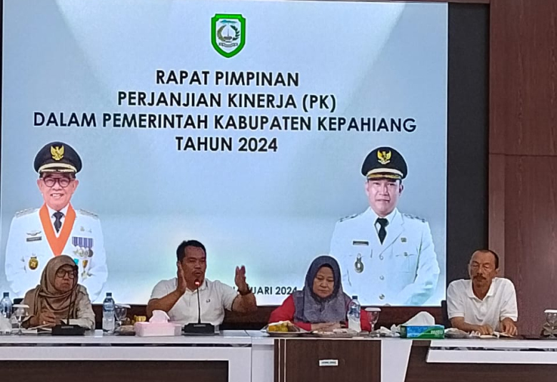 Kepahiang,Beritarafflesia.Com-Pemerintah Kabupaten Kepahiang melaksanakan rapat pimpinan organisasi kerja tahun 2024 terkait kinerja Organisasi Perangkat Daerah (OPD) yang dipimpin langsung oleh Sekretaris Daerah (Sekda) didampingi asisten 1,2 dan 3 serta staf Bupati, kegiatan ini diadakan di gedung aula Vicon, pada Jum’at (26/01/2024).