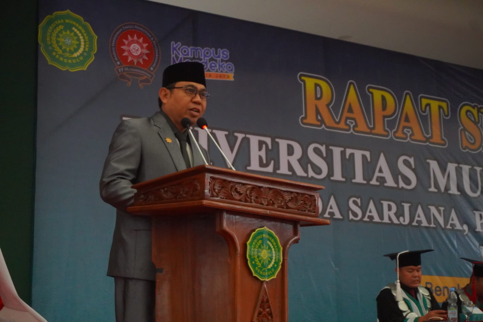 Bengkulu,Beritarafflesia.Com-Asisten I Setda Provinsi Bengkulu Khairil Anwar hadir pada Rapat Senat Terbuka Universitas Muhammadiyah Bengkulu (UMB), Wisuda Sarjana, Profesi Ners dan Pasca Sarjana periode Mei 2024, di Sportatorium Kampus IV UMB, Sabtu (25/05/2024).