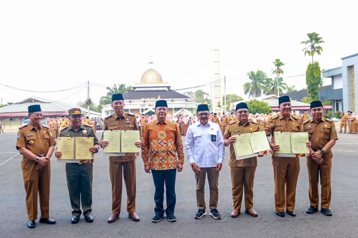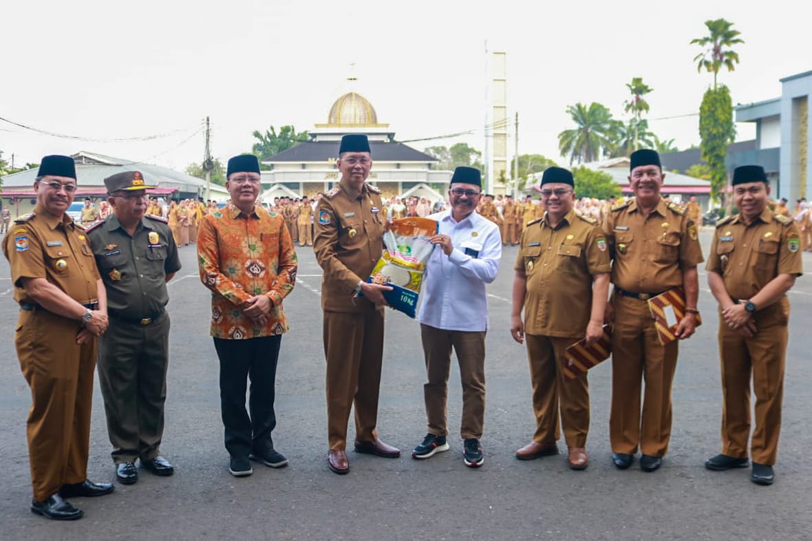 Bengkulu,Beritarafflesia.Com-Gubernur Bengkùlu Rohidin Mersyah menyaksikan penandatanganan secara simbolis perjanjian kerja sama (PKS) antara Perum Bulog Bengkulu dengan Sekretariat Daerah dan OPD Lingkungan Pemprov Bengkulu di halaman apel kantor Gubernur Bengkulu Selasa (10/10/2023) Pagi.