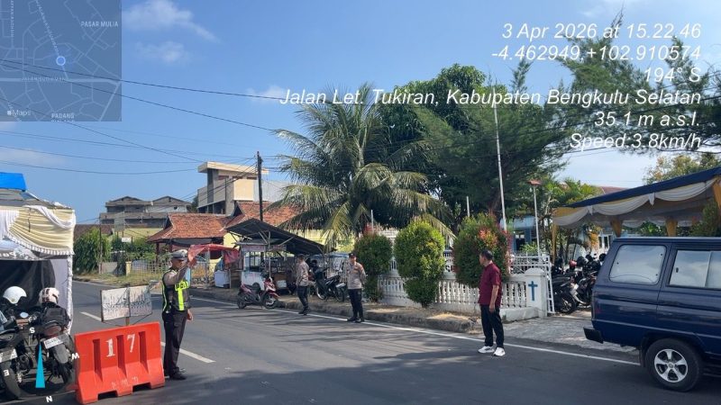 Bengkulu Selatan, Beritarafflesia.com, – Jajaran Kepolisian Resor (Polres) Bengkulu Selatan melaksanakan pengamanan ibadah Peringatan Kematian Yesus Kristus atau Jumat Agung di Gereja Katolik Santo Petrus, Jalan Letnan Tukiran, Kelurahan Pasar Baru, Kecamatan Kota Manna, Kabupaten Bengkulu Selatan, Jumat (3/4/2026) sore.