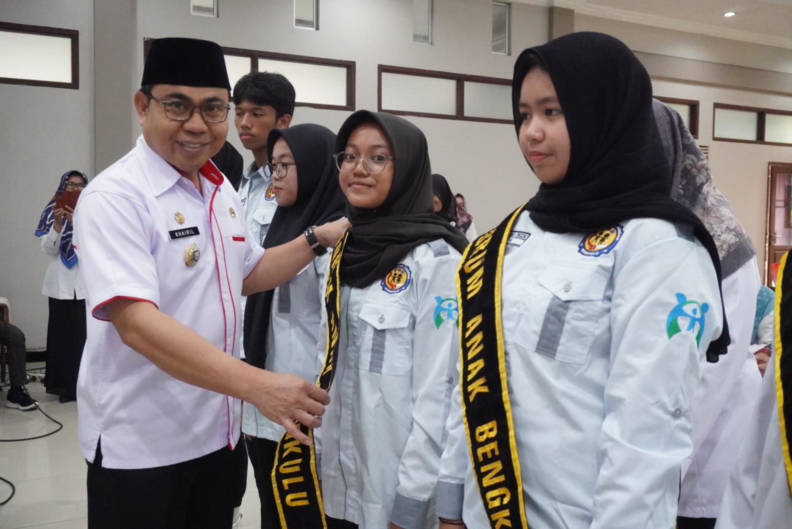 Dalam kesempatan itu juga dilaksanakan pengukuhan Forum Anak Bengkulu, yang ditunjuk sebagai duta di lingkungan sekolah dan kampus, untuk mengkampanyekan stop kekerasan terhadap perempuan dan anak. [Rian]adv