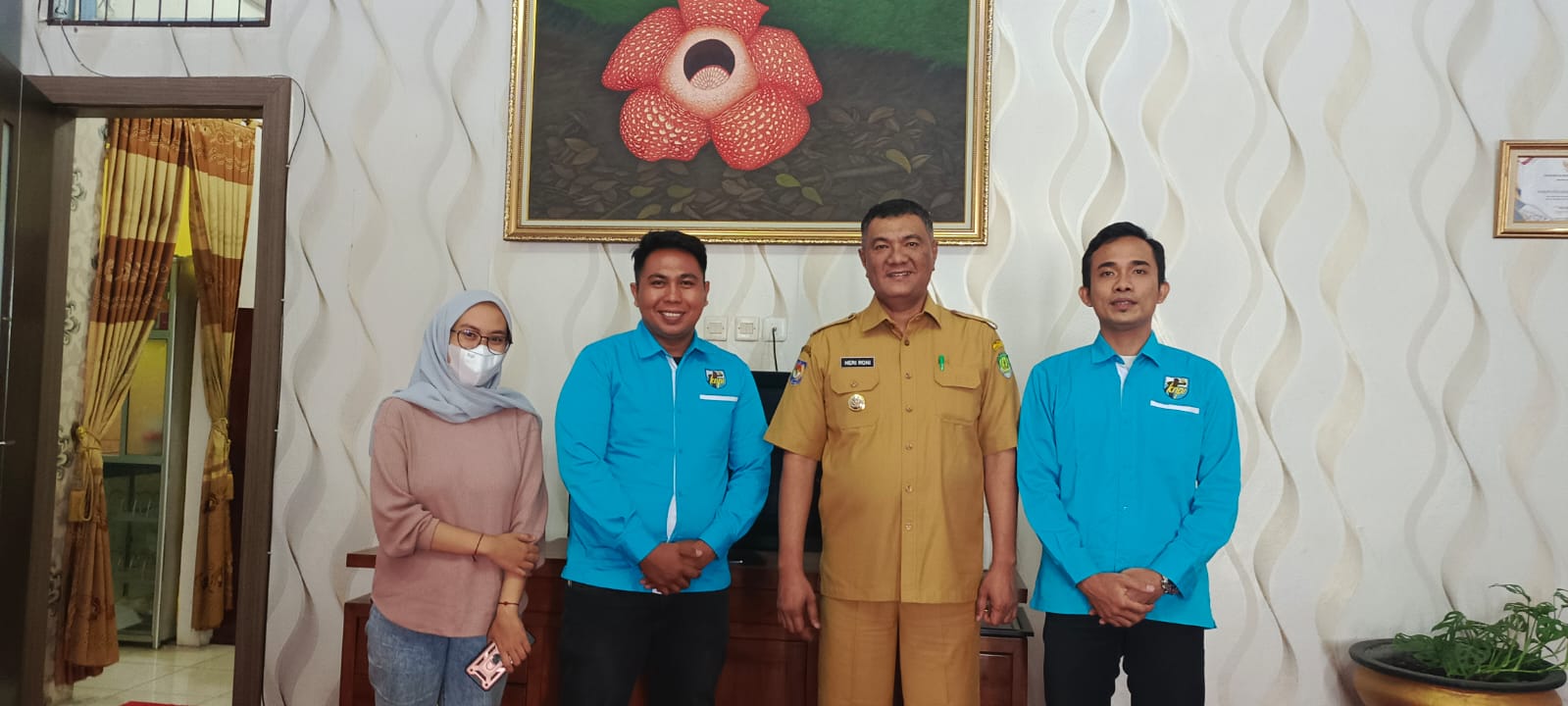 Carateker Ketua DPD KNPI Bengkulu Tengah Sandy Azhari di dampingi Sekretaris Jeni Melisa dan Bendahara Fice Relli disambut oleh Penjabat Bupati Heriyandi Roni serta Kabag Umum Jaka Santoso di ruang kerja Bupati.
