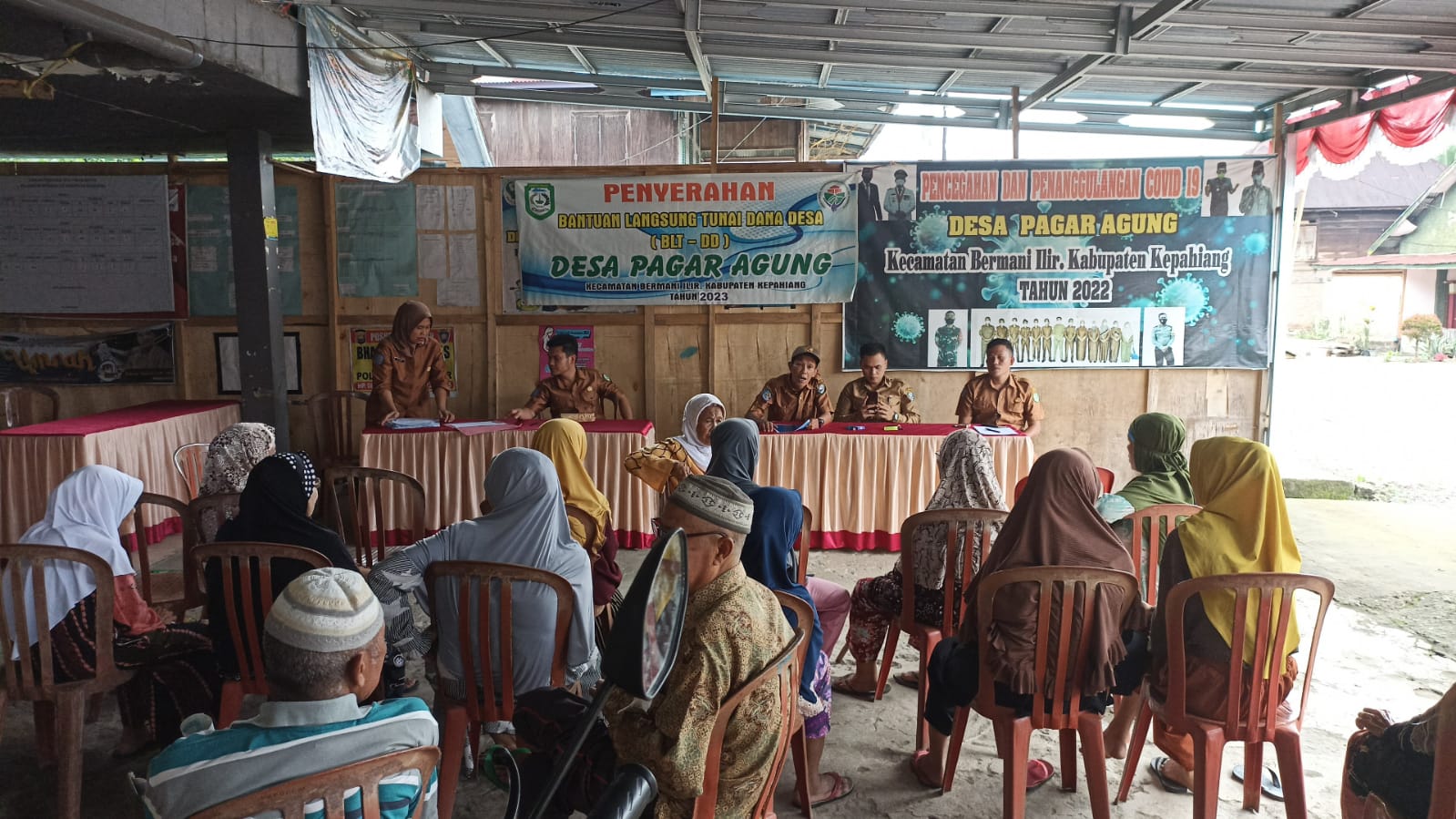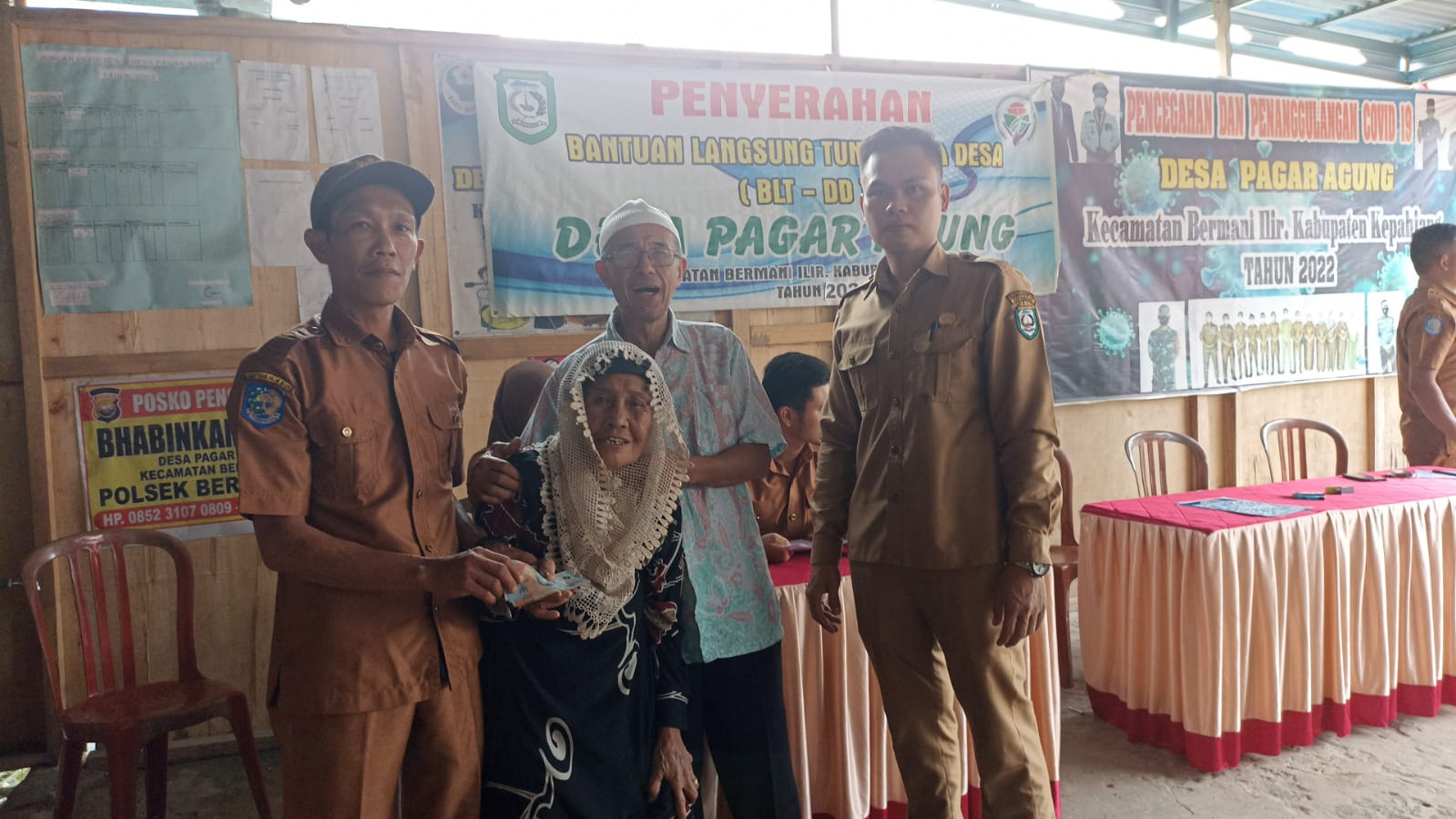 Bertempat di kantor desa pagar agung ,pada kesempatan itu pemerintah desa, kepala desa pagar agung M.FIWARDONI,,hadir langsung untuk memberikan bantuan BLT dd  kepada masyarakat Desa penerima bantuan BLT dd Turut hadir  perangkat desa  BPD ,PLD ,Babinsa, Babinkamtibmas ,Serta warga desa penerima.