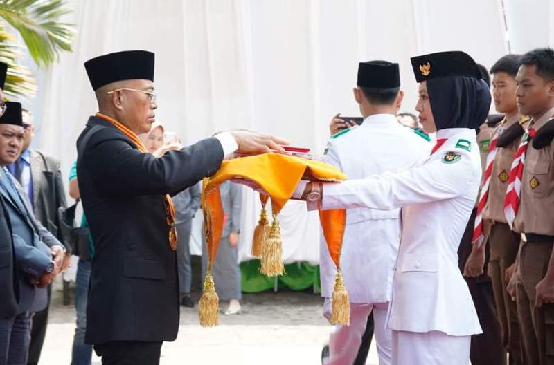 Penyerahan Duplikat Bendera Pusaka Serta Teks Proklamasi Pada Paskibraka Oleh Bupati Bengkulu Selatan