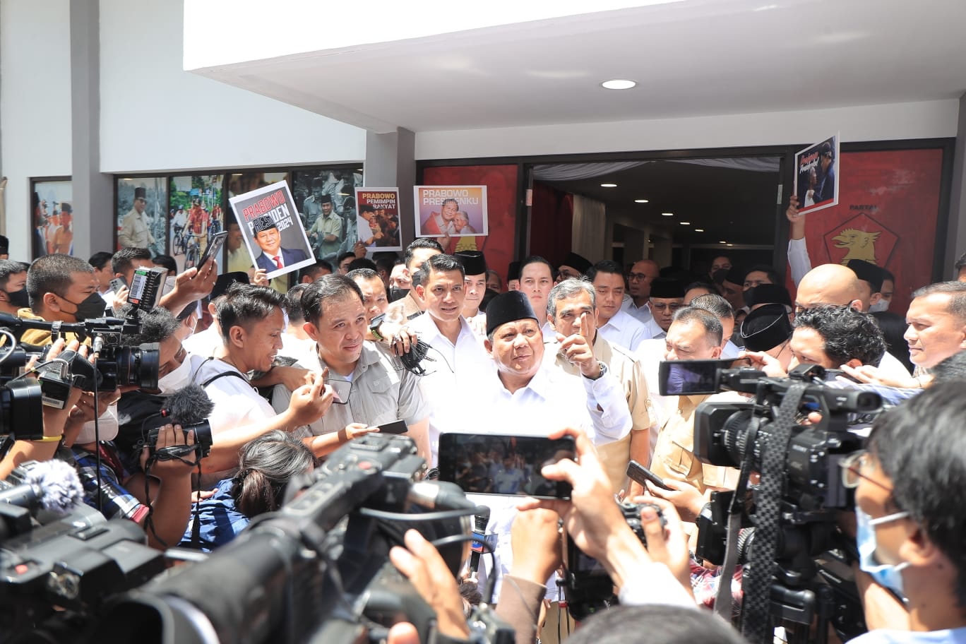 Jakarta -Beritarafflesia.com- Ketua Umum Partai Gerindra Prabowo Subianto meresmikan kantor Badan Pemenangan Presiden di wiliayah Slipi, Jakarta Barat, Sabtu (7/1/2023). Pada kesempatan ini Prabowo didampingi Sekjen Ahmad Muzani, Ketua Harian Sufmi Dasco Ahamd, serta jajaran DPP Partai Gerindra.