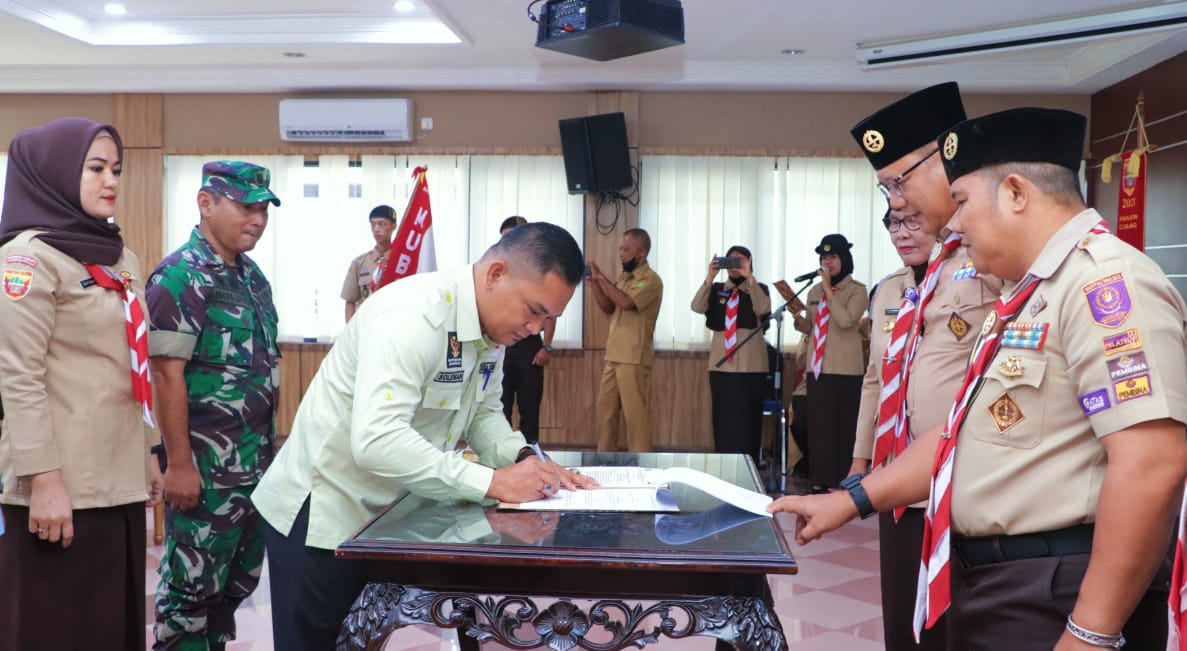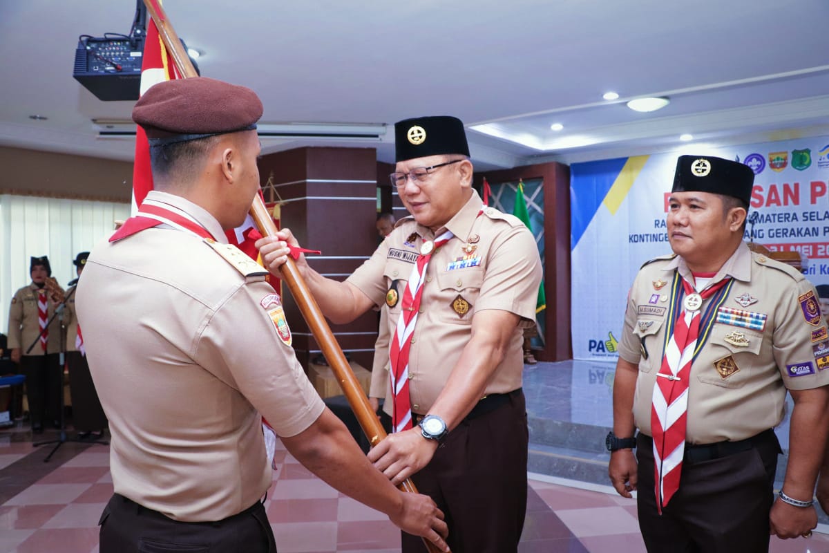 SEKAYU,Beritarafflesia.com-Penjabat Sekretaris Daerah Kabupaten Musi Banyuasin (Muba) Musni Wijaya SSos MSi, melakukan Pelepasan Kontingen Kwartir Cabang Gerakan Pramuka Musi Banyuasin Dalam Rangka Raimuna Daerah (RAIDA) Sumatera Selatan Ke-VIII, Selasa (16/5/2023) di Auditorium Pemkab Muba.