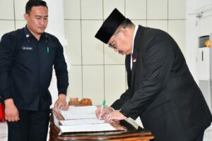 Usai pelantikan dan diambil sumpah, dilanjutkan dengan pembacaan pakta integritas yang dibacakan oleh Pj Sekda dan selanjutnya dilakukan penandatanganan naskah pelantikan dan berita acara pakta integritas.(Br1)adv