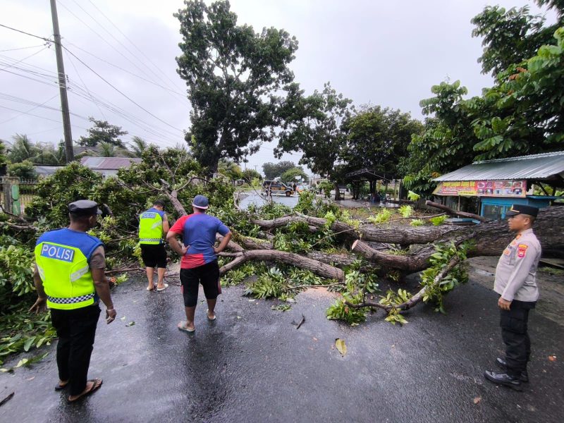 Kami menerima laporan dari masyarakat terkait adanya pohon tumbang yang menghalangi jalan. Personel langsung kami turunkan ke lokasi untuk melakukan evakuasi agar arus lalu lintas kembali normal,” ujar AKP Bayu.